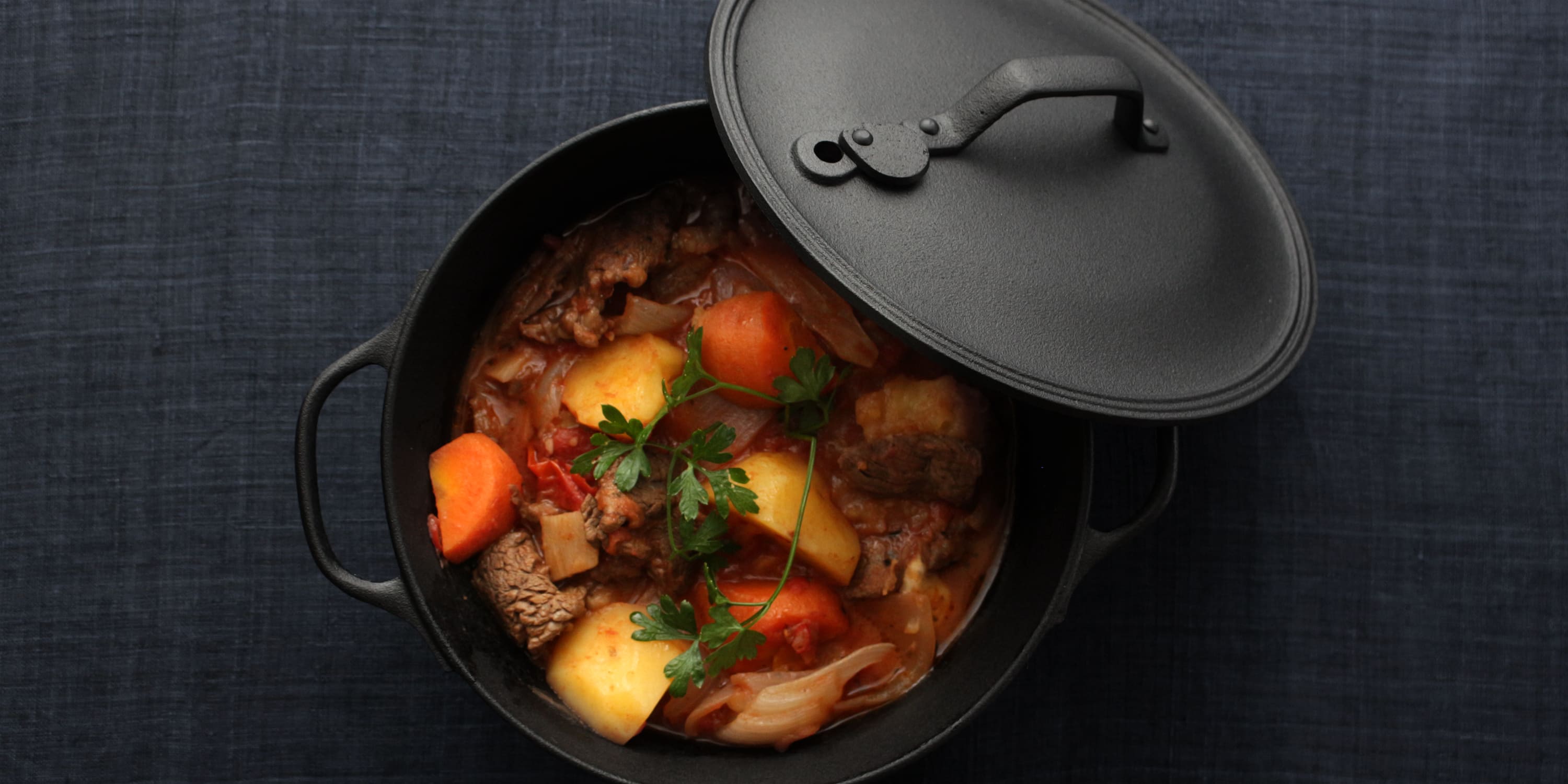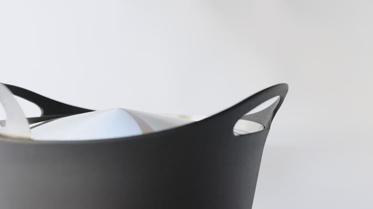 丸いフォルムと丸い耳が特徴的なクラフト・デザイン。浅めの鉄鍋で、22㎝は2~3人のおかずが作れる、ほどよいサイズ感で普段使いも特別な日も重宝します。鋳鉄製の本体と蓋はどちらも調理に使え、「炒め」「焼き」「蒸し」「炊き」のすべてを万能にこなします。食卓にそのまま運べばうつわにも。ジャンルを問わず、どんな料理やしつらえにも馴染む素朴さが愛される理由。コンロを出して囲むお鍋料理にも最適。ニューラウンド万能鍋 22㎝は、「料理を温かいままテーブルに」という職人の閃きから生まれ、のちに1976年グッドデザイン賞、1992年ロングライフデザイン賞を受賞しました。