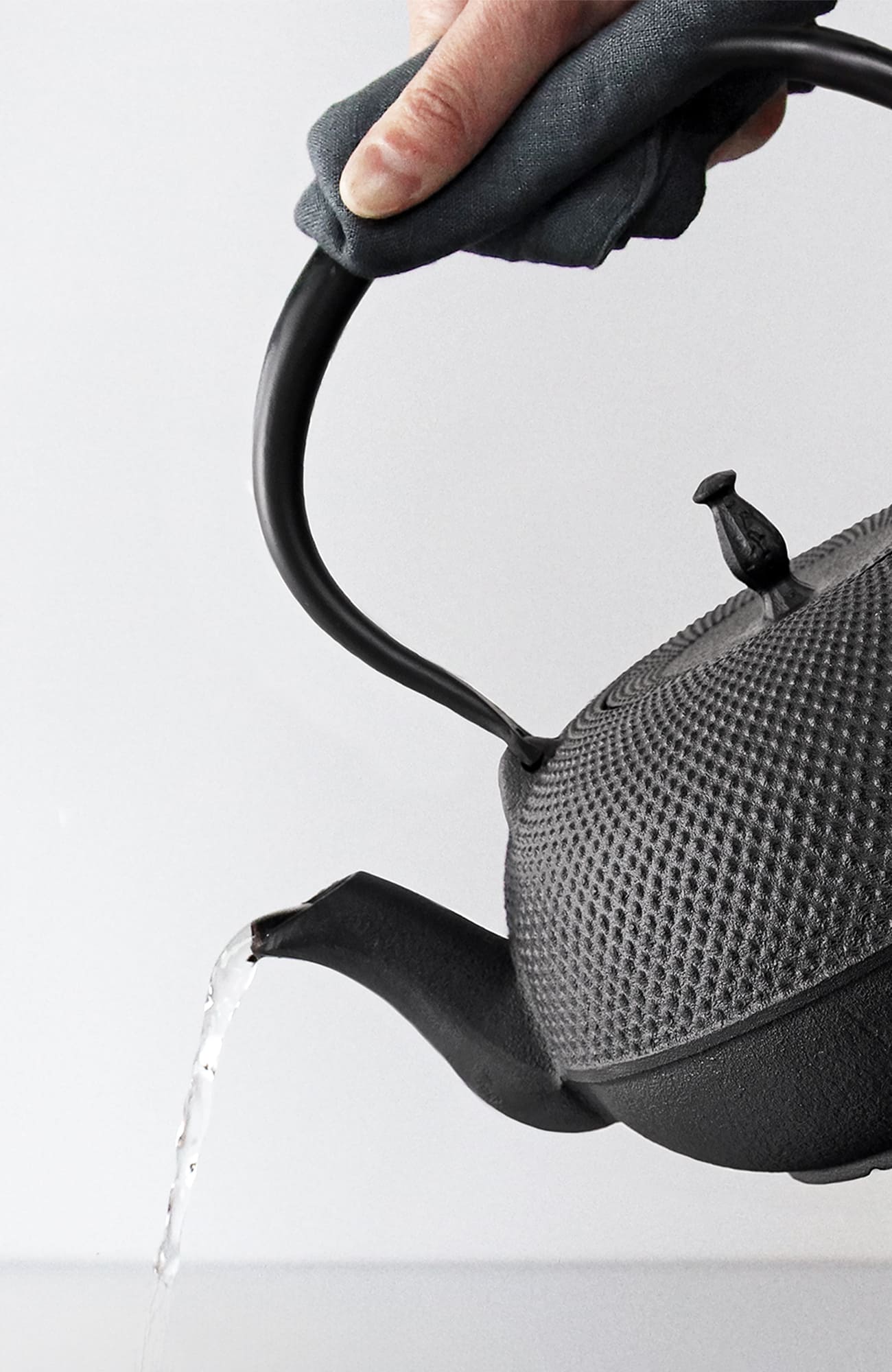 Palma-ヤシの木をモチーフにしたシリーズの鉄瓶ケトルです。たっぷり1.85Lサイズ。蓋の持ち手にはシリーズのモチーフとなった「ヤシの木」が。横からケトルを眺めると等間隔に鋳込まれたラインが波に、少しせりあがった輪口が島に見えてきます。海に浮かぶ小さな島に立つ象徴的なヤシの木が浮かび上がってくるようです。伝統様式の延長線上では考えつかない革新的なデザイン。『Palma』シリーズは世界的なプロダクトデザイナーである英国出身ジャスパー・モリソン氏と南部鉄器メーカー及源鋳造のコラボレーションで誕生しました。