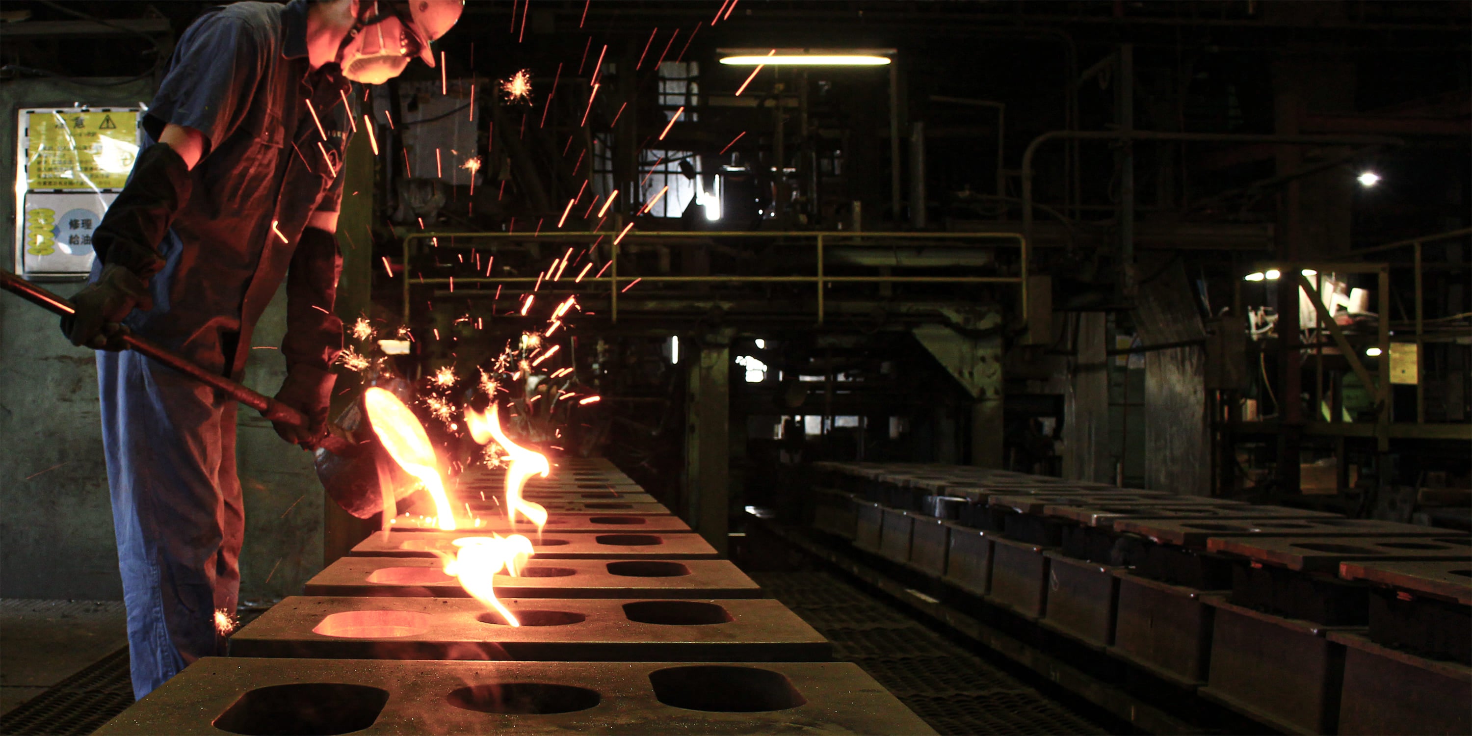 重く大きな煮込み鍋と小さな茶托。それらは同じ砂で型をつくりますが、それぞれの特徴を見極めて、鉄の温度を変えて注ぎます。大きな重い鍋は、高温で素早く鉄を流し、小さな茶托は、重い鍋よりも200℃程温度を下げて注ぎます。数々の製品にそれぞれの特徴。長い経験によってそれぞれに適切な鉄の温度を見極めているのです。