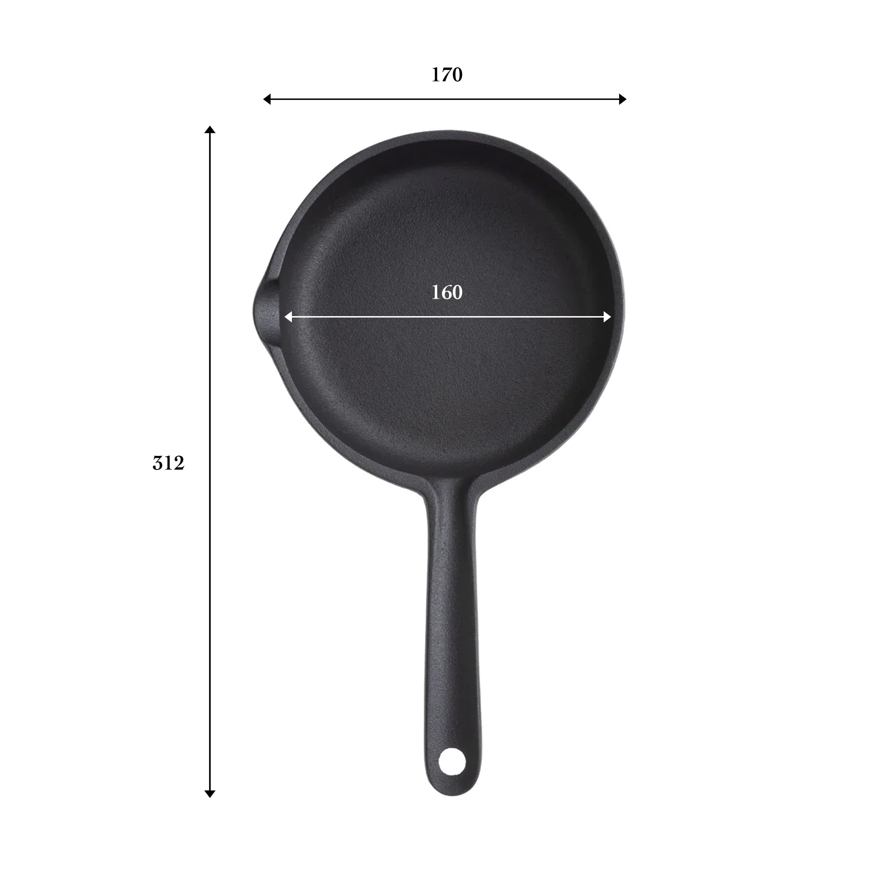 発売から30年、長年愛され続けている『フライパン』という名の正統派鉄鋳物フライパンです。がっしりとした見た目ながら、工芸品らしい優しい雰囲気が魅力の、飽きの来ないデザインです。底面の大きなカーブと、すき焼き鍋のような浅めの鍋ほどの深さで、食材をかき混ぜやすく、ガス火やIH調理器の上でもぐらつかない安定した使い心地を提供します。鋳鉄素材ならではの蓄熱力で、料理力も抜群。15㎝のミニサイズは目玉焼きや炒め物などさっと調理したい時にぴったりです。