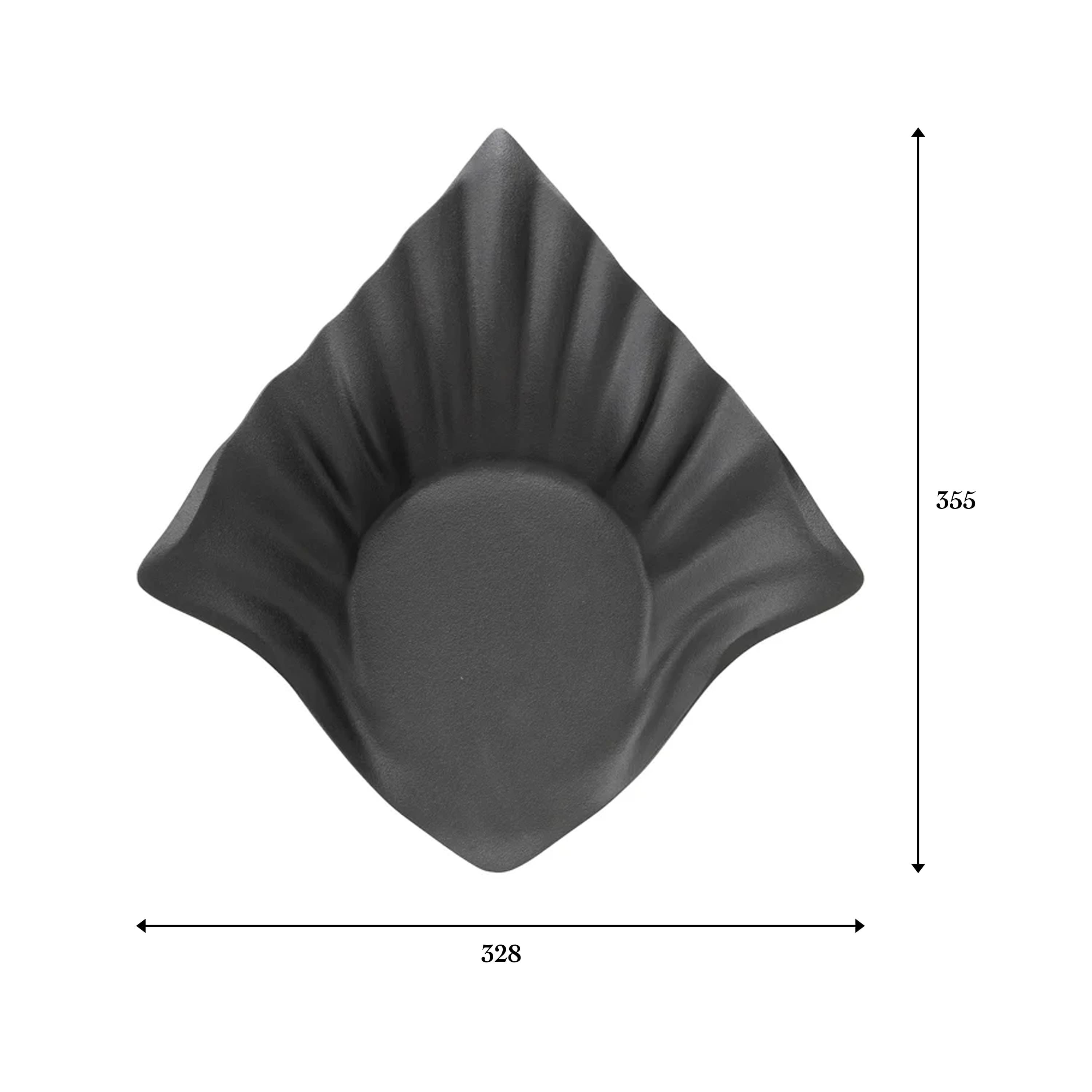布が風に身を委ねて靡く姿を描写したトレイです。重厚な鉄鋳物でありながら、繊細なラインと軽やかさを感じるフォルムが特徴です。枯山水の水面のようなラインが印象的な、シャープなフォルムの鉄瓶 平形糸目 0.9Lと合わせた姿を想像してデザインされ、まるで湖に浮かぶ優雅な白鳥を連想させます。