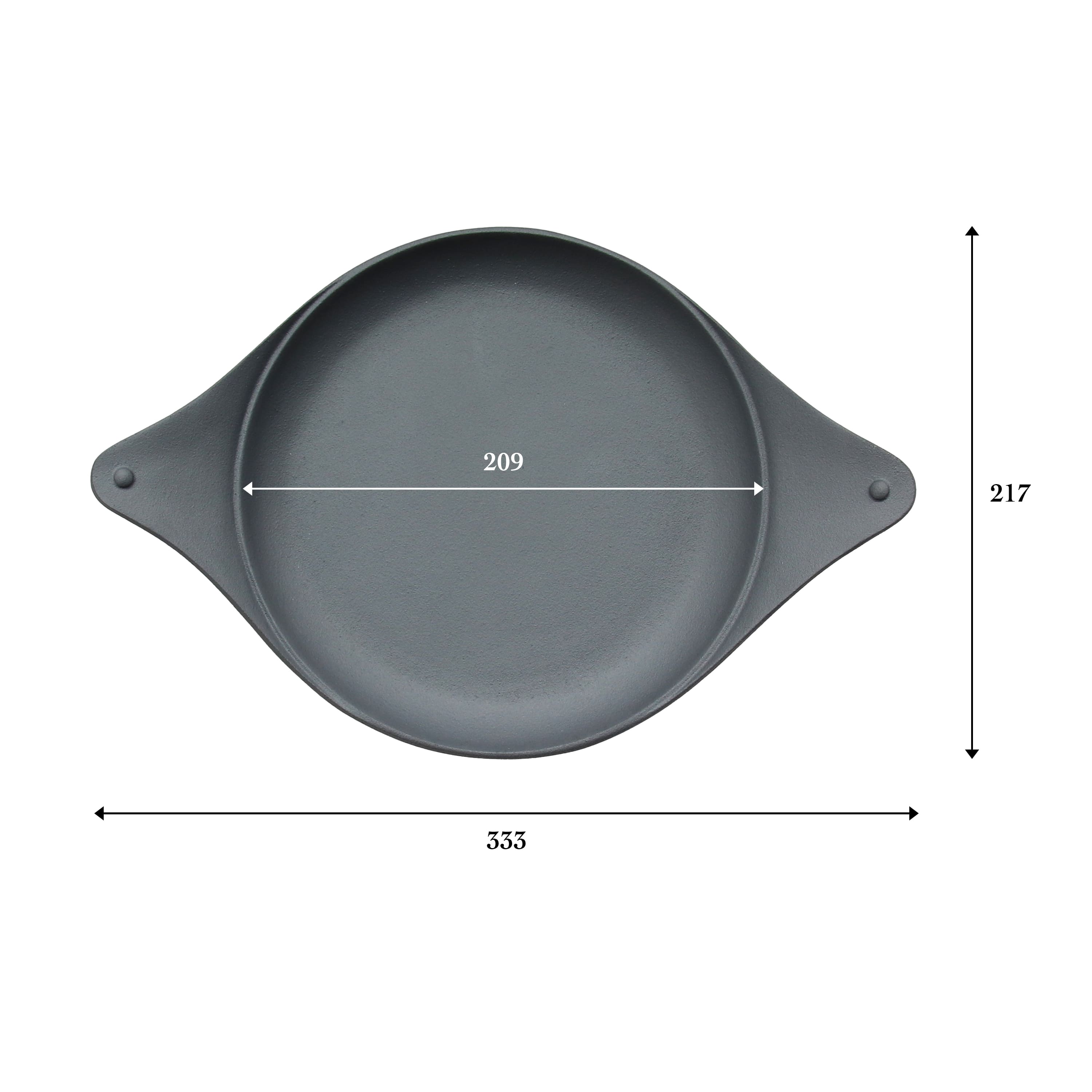 魅せる無塗装鉄鋳物フライパン『naked pan』シリーズ。コンセプトは「料理するうつわ」。凛とした佇まいの中にたおやかさを感じさせるクラフトデザインです。naked pan 両手21cmはあえて長い柄のないフライパンです。1~2名分のおかずが調理ができる小回りが利くサイズ。同サイズの深形に比べてよりスタイリッシュな印象です。食材の手返しがスムーズな大きな鍋底のカーブ。持ち運びやすい耳のような取っ手。食卓に出せば温かさをキープするお皿に早変わり。OIGEN独自の「無塗装はだか仕上げ」でサビに強く、鉄フライパンの弱点を克服。使い込むほどに美しい黒色に育っていくプレミアムフライパンです。