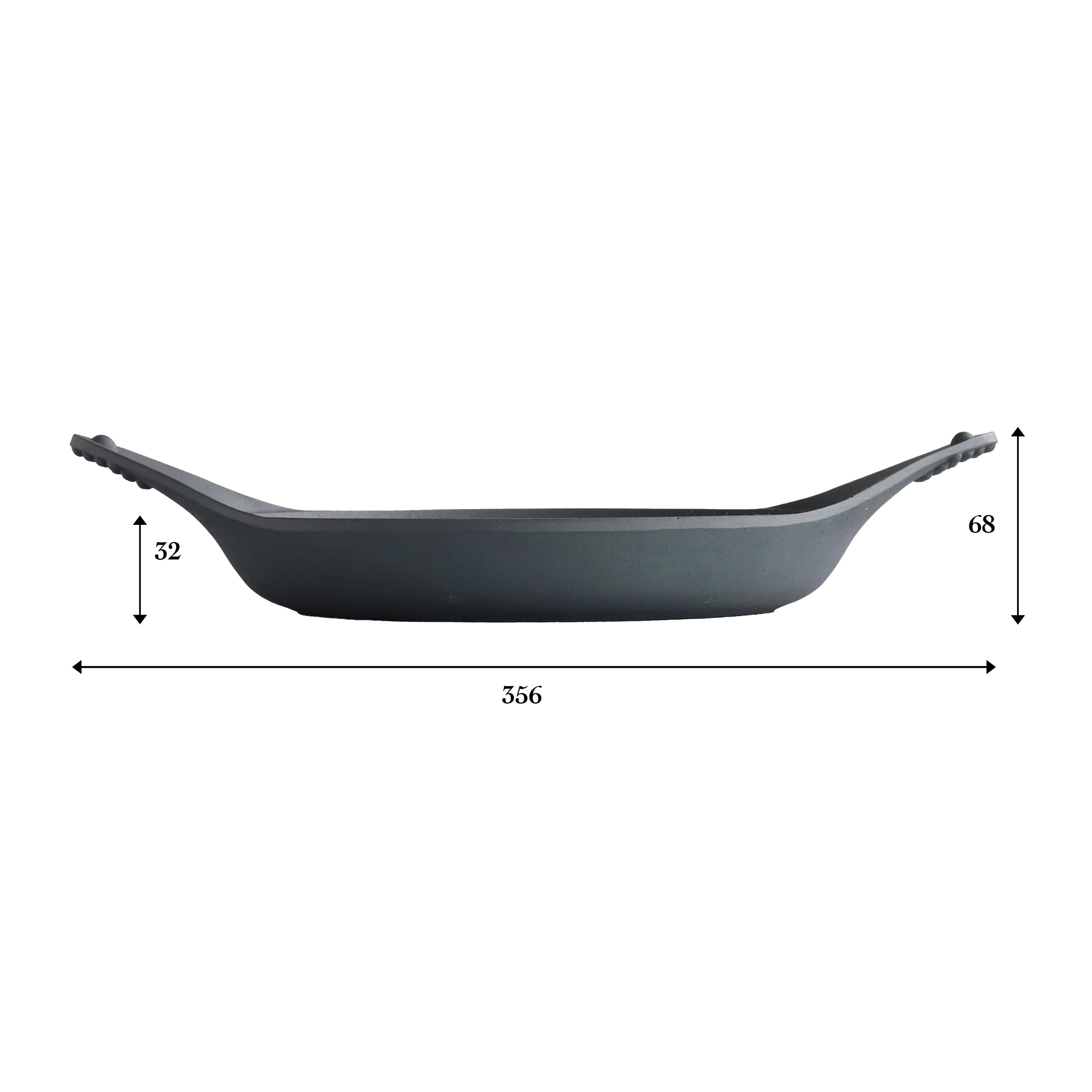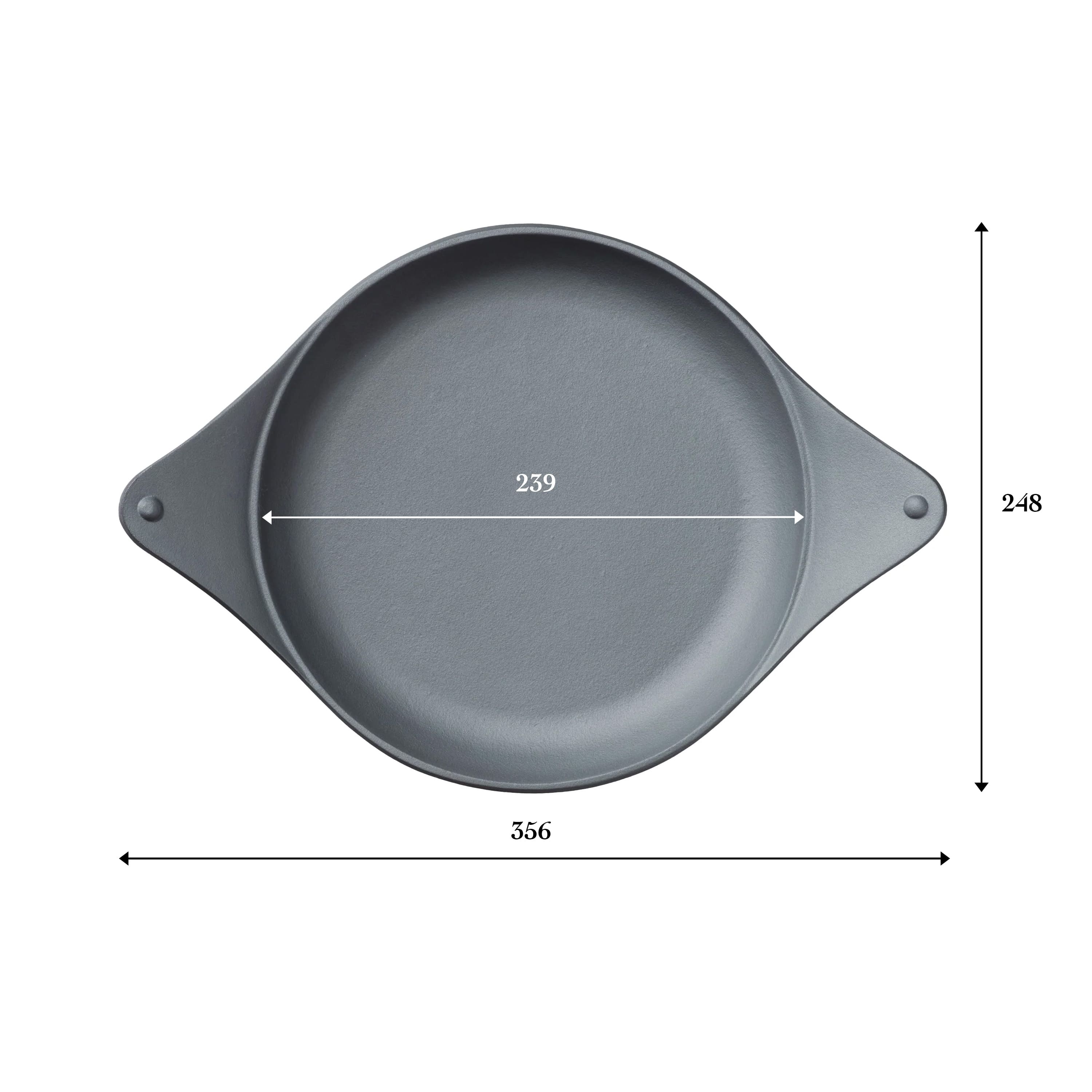 魅せる無塗装鉄鋳物フライパン『naked pan』シリーズ。コンセプトは「料理するうつわ」。凛とした佇まいの中にたおやかさを感じさせるクラフトデザインです。naked pan 両手24cmはあえて長い柄のないフライパンです。3~4人分の調理ができるベーシックなサイズ。同サイズの深形に比べてよりスタイリッシュな印象です。食材の手返しがスムーズな大きな鍋底のカーブ。耳のような取っ手で持ち運びやすく、食卓に出せば温かさをキープするお皿に早変わり。OIGEN独自の「無塗装はだか仕上げ」でサビに強く、鉄フライパンの弱点を克服。使い込むほどに美しい黒色に育っていくプレミアムフライパンです。