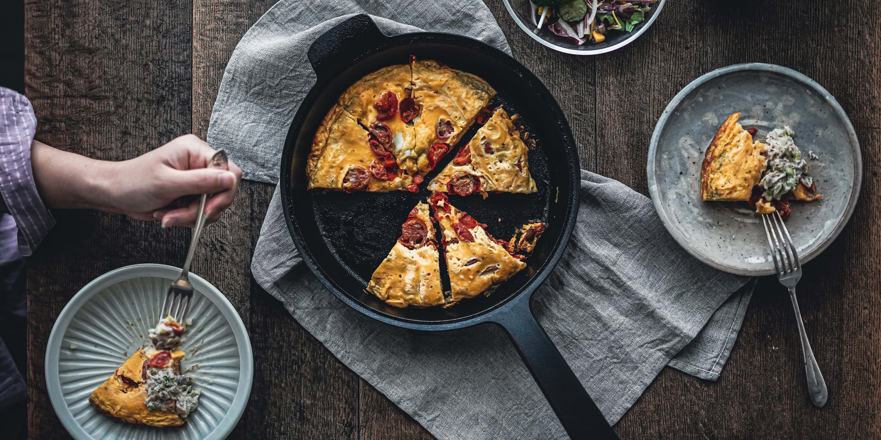 Palma-ヤシの木をモチーフにしたシリーズの鉄鋳物フライパン。ベーシックなサイズの24cmです。持ち手は緩やかな傾斜で握りやすく、両手でも持ち運びやすいよう、前方部には短い取っ手が付いています。デザイン性はもちろん、実用性も考え抜かれた深さや持ち手の角度など、料理好きの方やプロの料理人からも人気が高いフライパンです。世界的プロダクトデザイナーのジャスパー・モリソン氏がデザインを手掛けました。