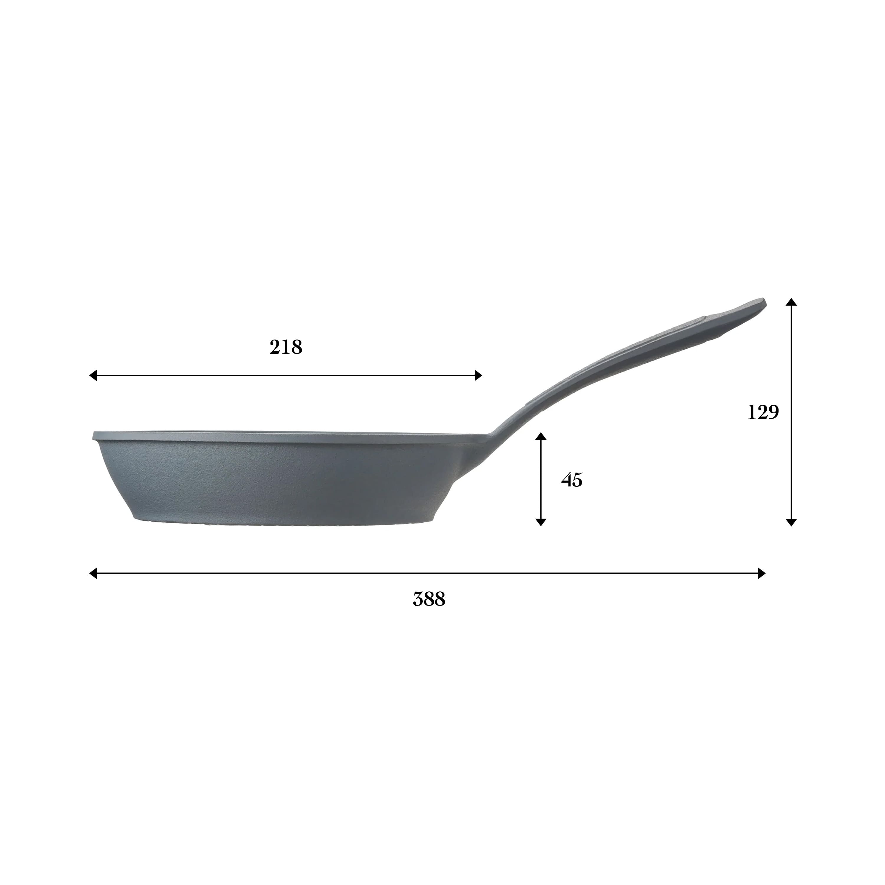一生ものの無塗装鉄鋳物フライパンSOLITTO-ソリット-。その実力と迫力を知ると手放せなくなる、THEフライパンです。小ぶりでも本格派の20cmは、2人分程度の調理に最適なサイズ感です。側面が高く容量もたっぷり。鋳鉄が蓄えた熱を安定して食材に伝え、圧倒的な「焼き」を実現。OIGEN独自の「無塗装はだか仕上げ」でサビに強く、鉄フライパンの弱点を克服。使い込むほどに美しい黒色に育ち、上質な道具の真価を実感できます。