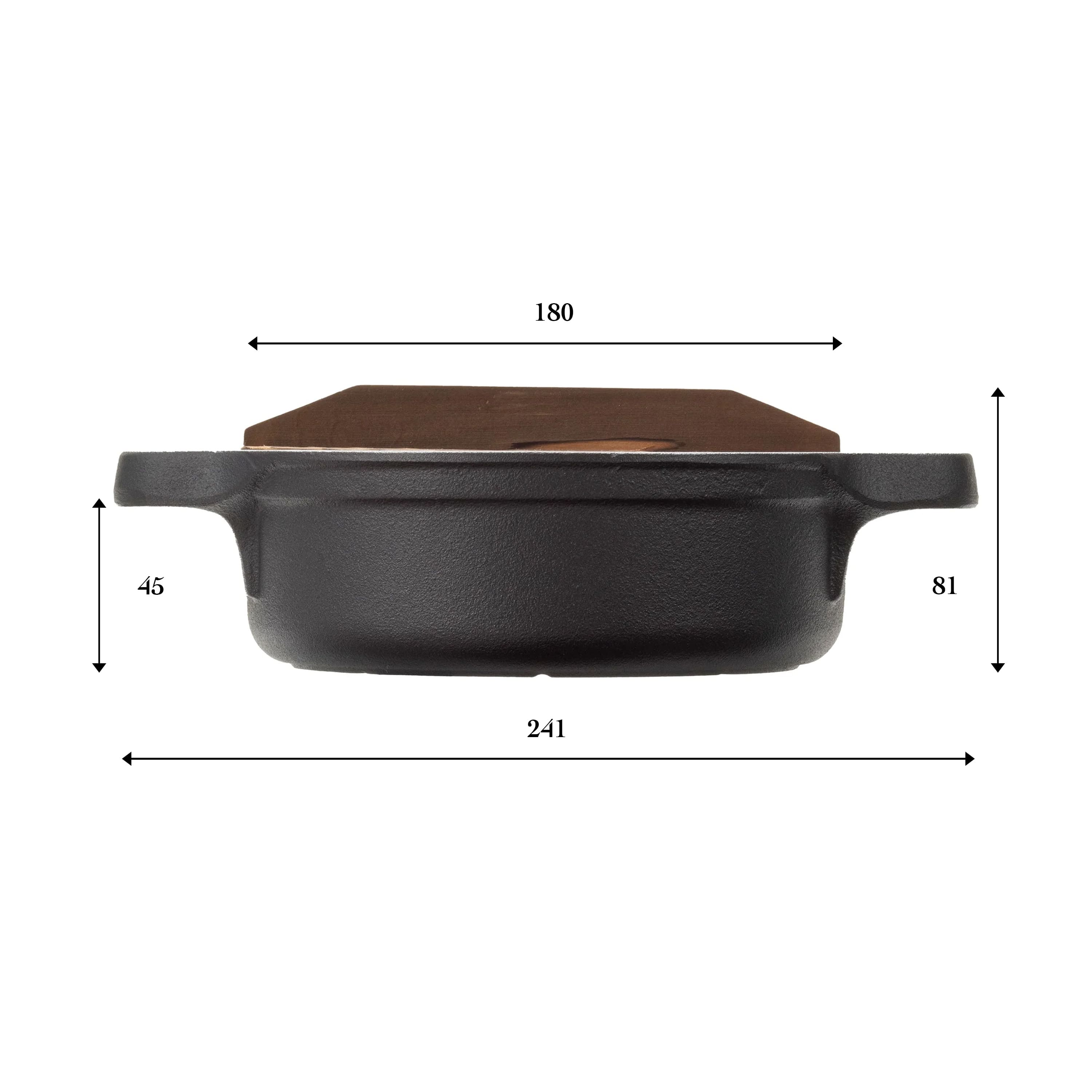 その名の通り、すき焼きと餃子で実力を発揮する、焼杉の木蓋が付いた浅い鉄鍋です。16cmは小ぶりな1人用です。鉄器が誇る高温でこんがり焼き色をつけた後、木蓋で閉じ込めた対流熱と鉄鍋が蓄えた熱でじっくり旨味を引き出す「焼き蒸し」調理に最適。40年ほど前の昭和時代に生まれた美しい工芸デザインは、懐かしさとモダンさを兼ね備えています。OIGENを代表する鉄鍋で、直火はもちろん、IH調理器でも使用可能。4つのサイズ展開です。