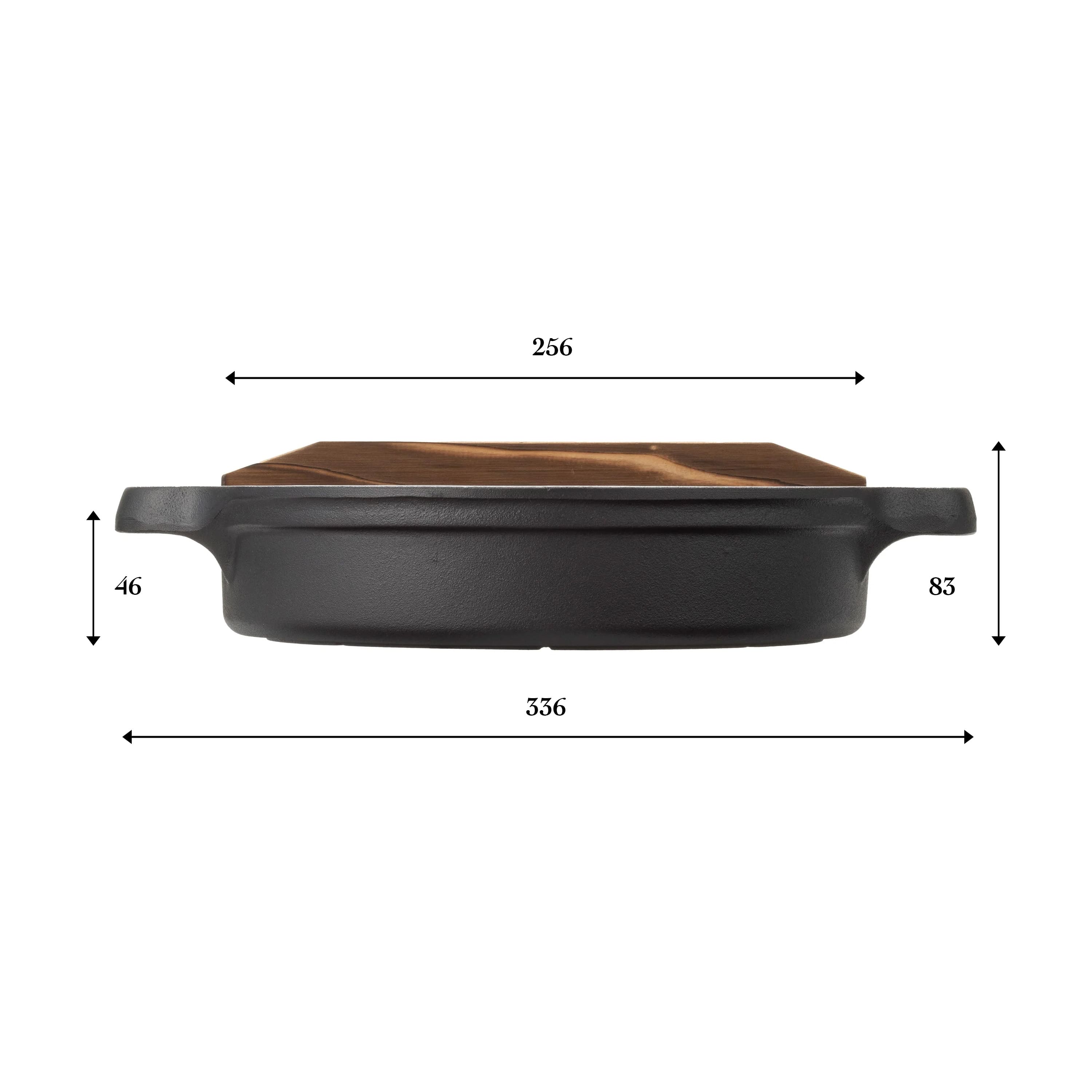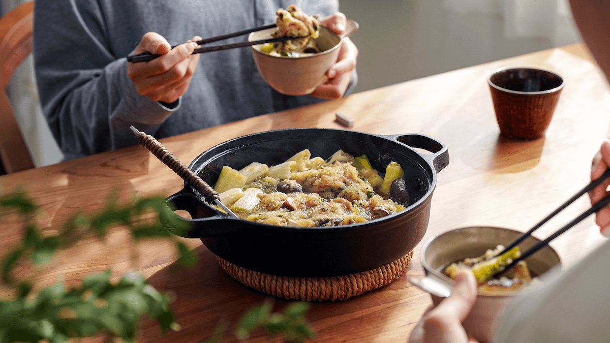 その名の通り、すき焼きと餃子で実力を発揮する、焼杉の木蓋が付いた浅い鉄鍋です。24cmはベーシックなサイズの3人~4人用。鉄器が誇る高温でこんがり美味しい焼き色を付けたら木蓋で閉じ込めた対流熱と鉄鍋が蓄えた熱でじっくりと旨味を引き出していく。40年ほど前の昭和の時代の美しい工芸デザインが生み出したカタチは、どこか懐かしい雰囲気とモダンさの両方を持ち合わせています。OIGENを代表する鉄鍋です。直火はもちろんIH調理器でも使用可能。4つのサイズ展開です。