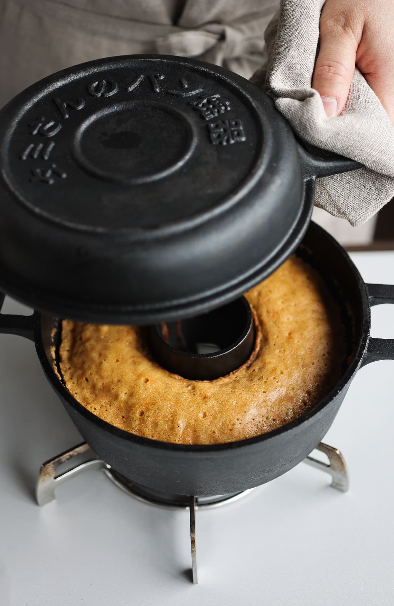 オーブン要らずで、本格ベイク。コンロでパンやケーキが焼ける、ドーナツ型の鉄鍋パン焼器。“タミパン”の愛称で長年親しまれてきました。外径はホールケーキ6号(約18cm)程度の大きさです。真ん中に煙突のある独特なかたちが、内側と外側からしっかりと熱を入れ、ムラなく美しく焼き上げてくれます。香ばしい香り、しっとりもちもちの食感は、まさに鉄鍋ならではの仕上がりです。ーーそして、2025年、”新生タミパン”として再登場。OIGEN独自の「無塗装はだか仕上げ」で、焼き目から違う美味しさに。