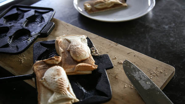 『タミさんのパン焼器』の姉妹品『タミさんのたい焼器 』。お子さまでも食べやすい小さ目の本格的なたい焼きが一気に4つ焼けます。屋台やお店で売っているたい焼きはタミおばあちゃんには少し大きすぎて食べきれないから、頭としっぽに分けてひ孫と一緒に食べる姿を見て思い付きました。意外や意外!一流のシェフ達にも人気のアイテム。どうやら遊び心をくすぐるようです。つくるたのしさも存分に感じられる鉄のたい焼器です。