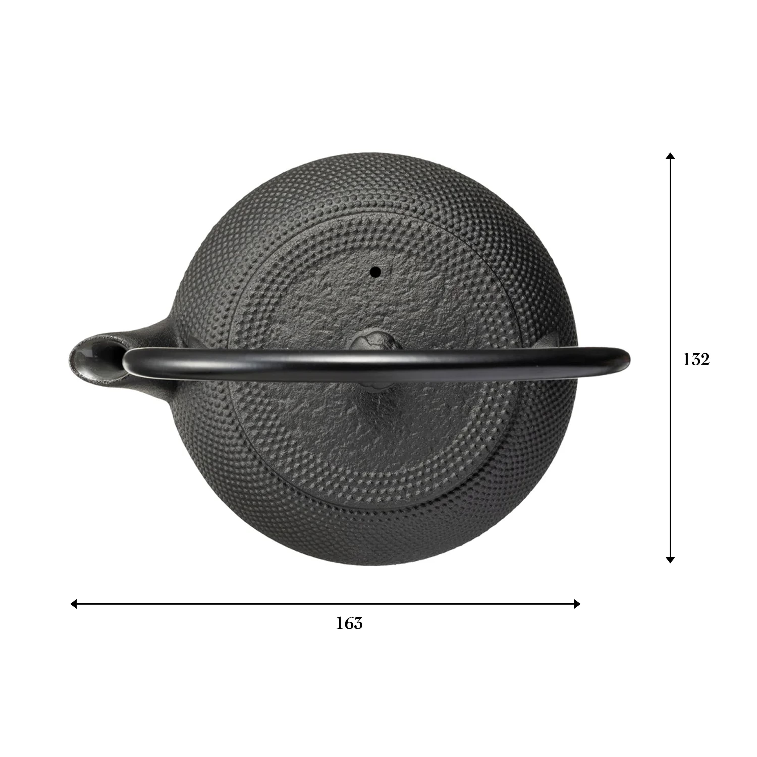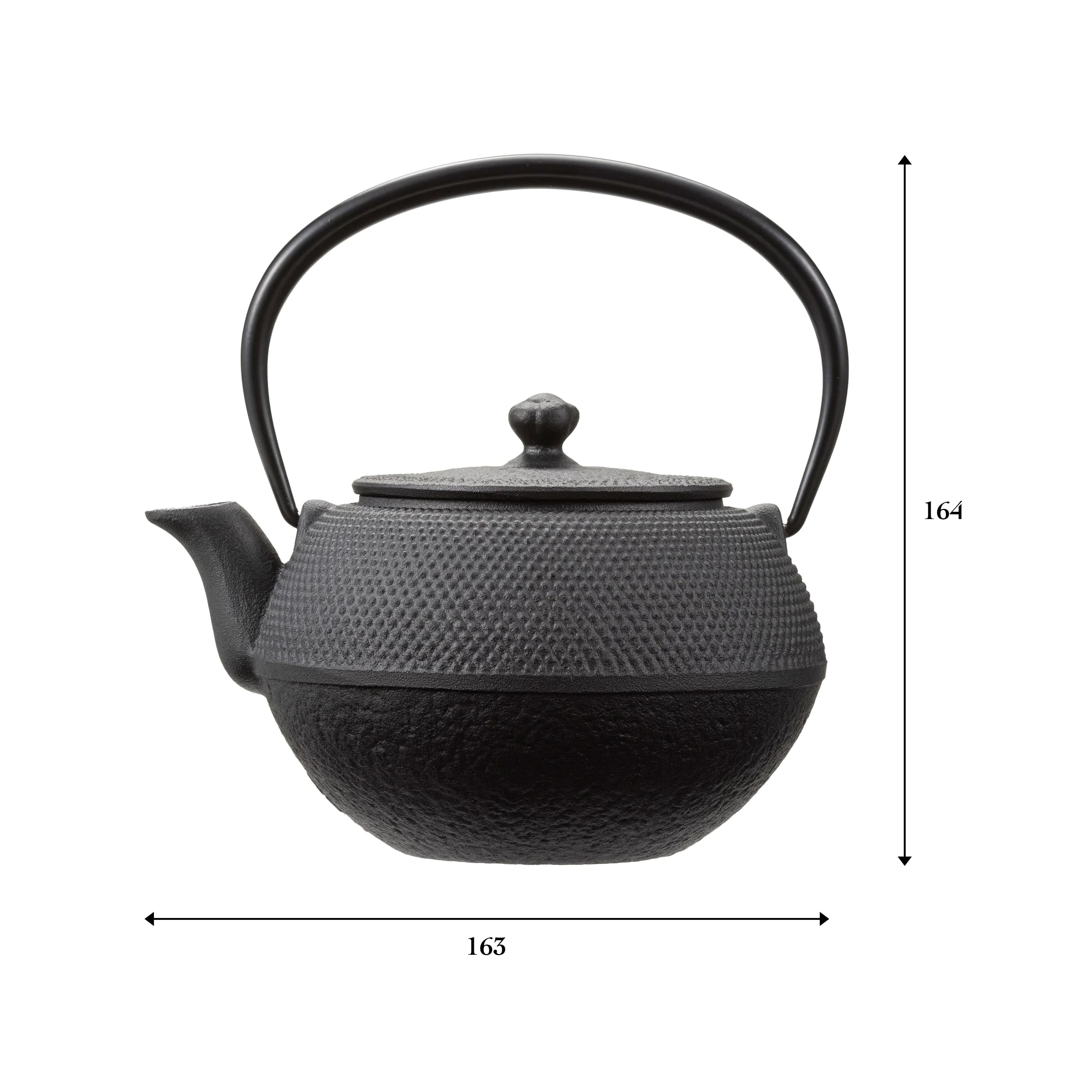 伝統模様「アラレ」があしらわれた、代表的なデザインの鉄急須です。0.65Lはマグカップで2~3杯程度のお茶を愉しめます。お茶の時間を一人で愉しむのは勿論、おもてなしにも丁度いいサイズです。鉄急須は蓄熱性に優れ、長時間、温かいお茶を愉しめるのが最大の魅力。鉄器初心者でもお手入れがしやすい内部ほうろう仕上げのためギフトにもおすすめです。