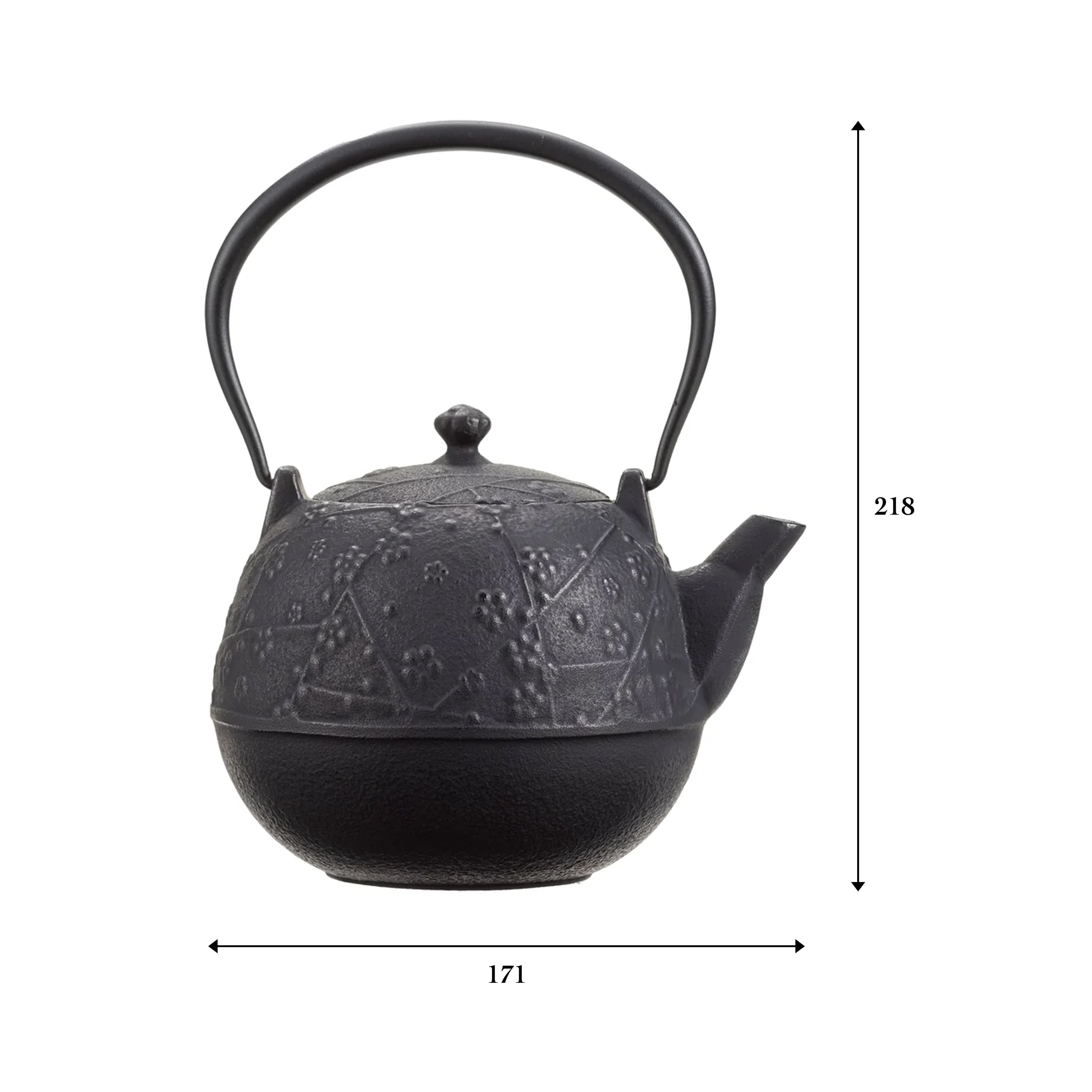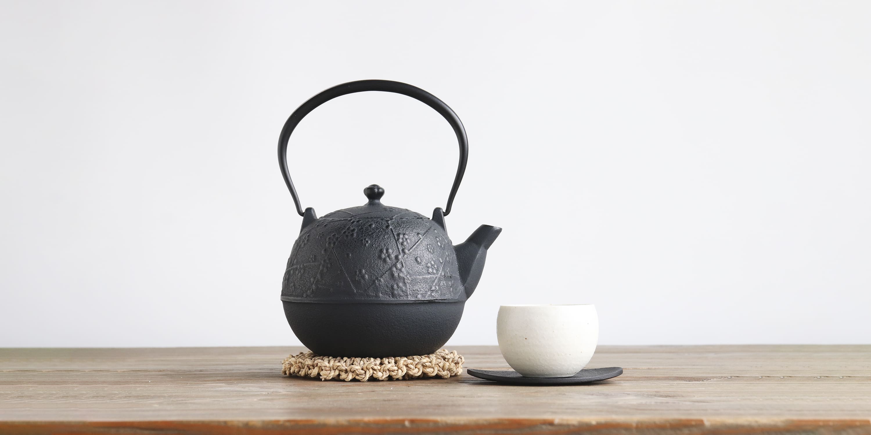 手のひらで包み込める大きさの瓜のようなカタチに、日本の伝統柄「小紋梅」をあしらった和風で可愛らしい鉄瓶です。蓋には南部鉄瓶に代表される梅のつまみがちょこんとのっかっています。注ぎ口につまんだようなアクセントがあり、ツルは細くしなやかな線が特徴的です。色は黒とグレーの2色を組み合わせることで深みを持たせた風合いに。ディテールに品が宿る逸品です。目上の方へのギフトとしてもおすすめの鉄瓶です。