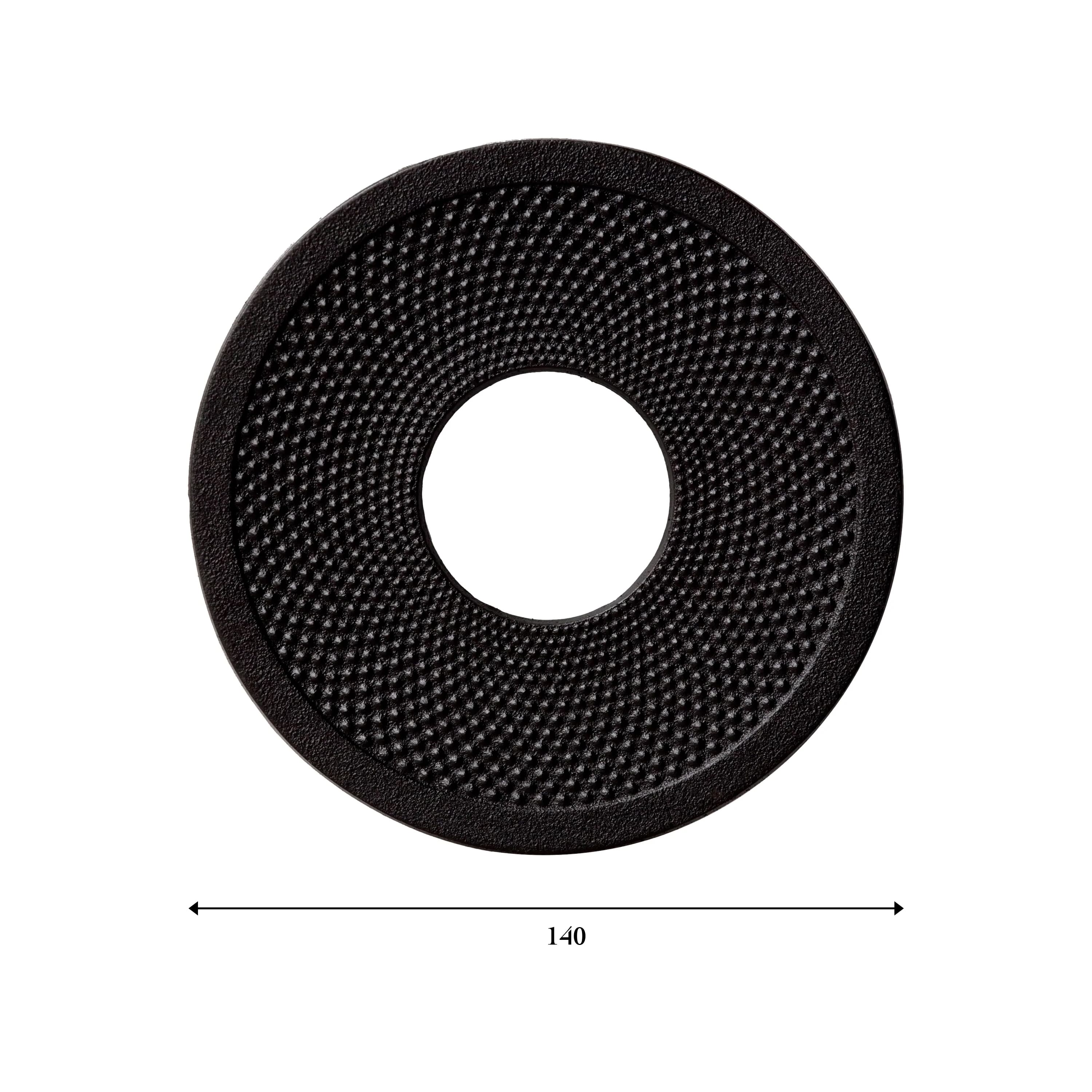 南部鉄瓶の伝統模様「アラレ」があしらわれた、代表的なデザインの瓶敷。0.5L程度の鉄急須や1L程度の鉄瓶にちょうど良いサイズです。アラレ模様の鉄急須・鉄瓶をご購入予定またはご愛用中の方におすすめです。