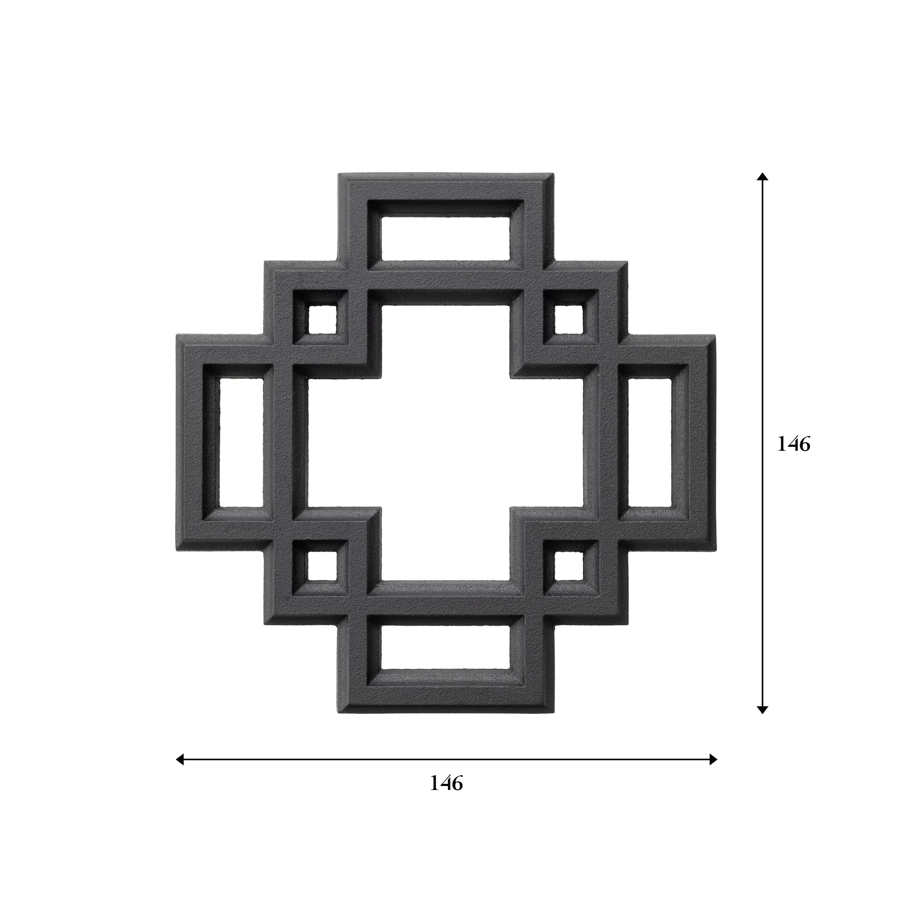 四角形を重ね合わせたような形が特徴的な瓶敷です。鉄瓶や鉄急須をのせる瓶敷としてはもちろん、棚のディスプレイや壁掛けとしてもお愉しみいただけます。OIGEN鉄器ならではのマットな質感が魅力的です。滑り止めのゴム足が付いているので、安心して使用でき、テーブルに傷が付く心配もありません。