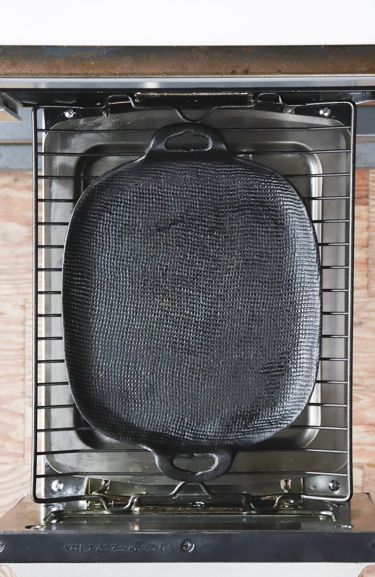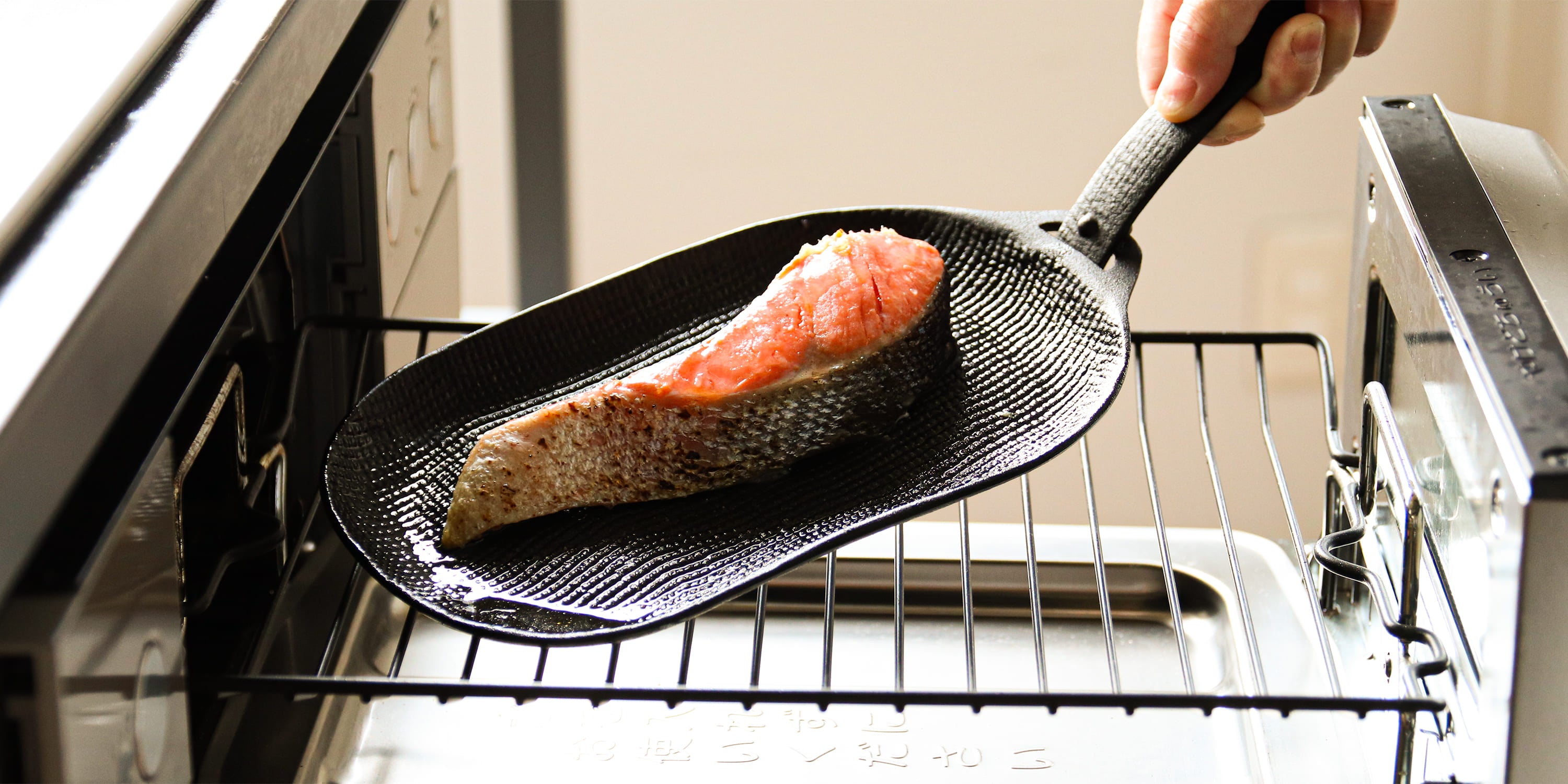 優れた熱源・魚焼きグリルを最大限に活用すべくデザインされた鉄の焼き皿。トースターや直火でも使えます。3~4名分のおかず一皿にちょうどいいサイズ感。鮭の切り身なら3~4尾、切り餅なら4~6個同時に焼ける、シリーズ中最も広い底面で、側面が浅いタイプです。浅型はシンプルなグリル調理におすすめです。布目模様とぽってりとしたラインが特徴的で、やさしくレトロな雰囲気がどの世代にも愛される普遍的なデザインです。出来上がったら専用木台に載せて熱々なまま食卓へ。