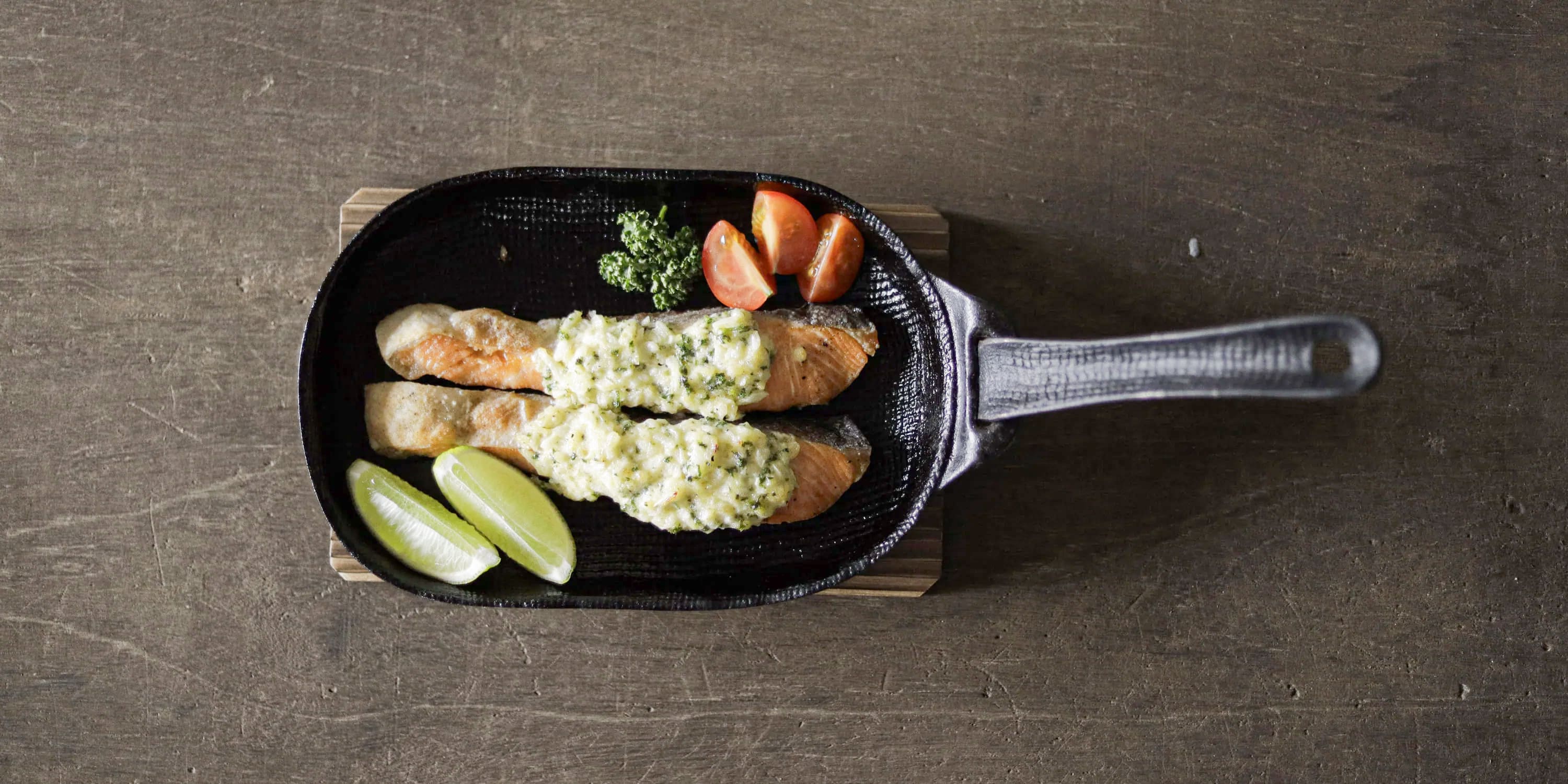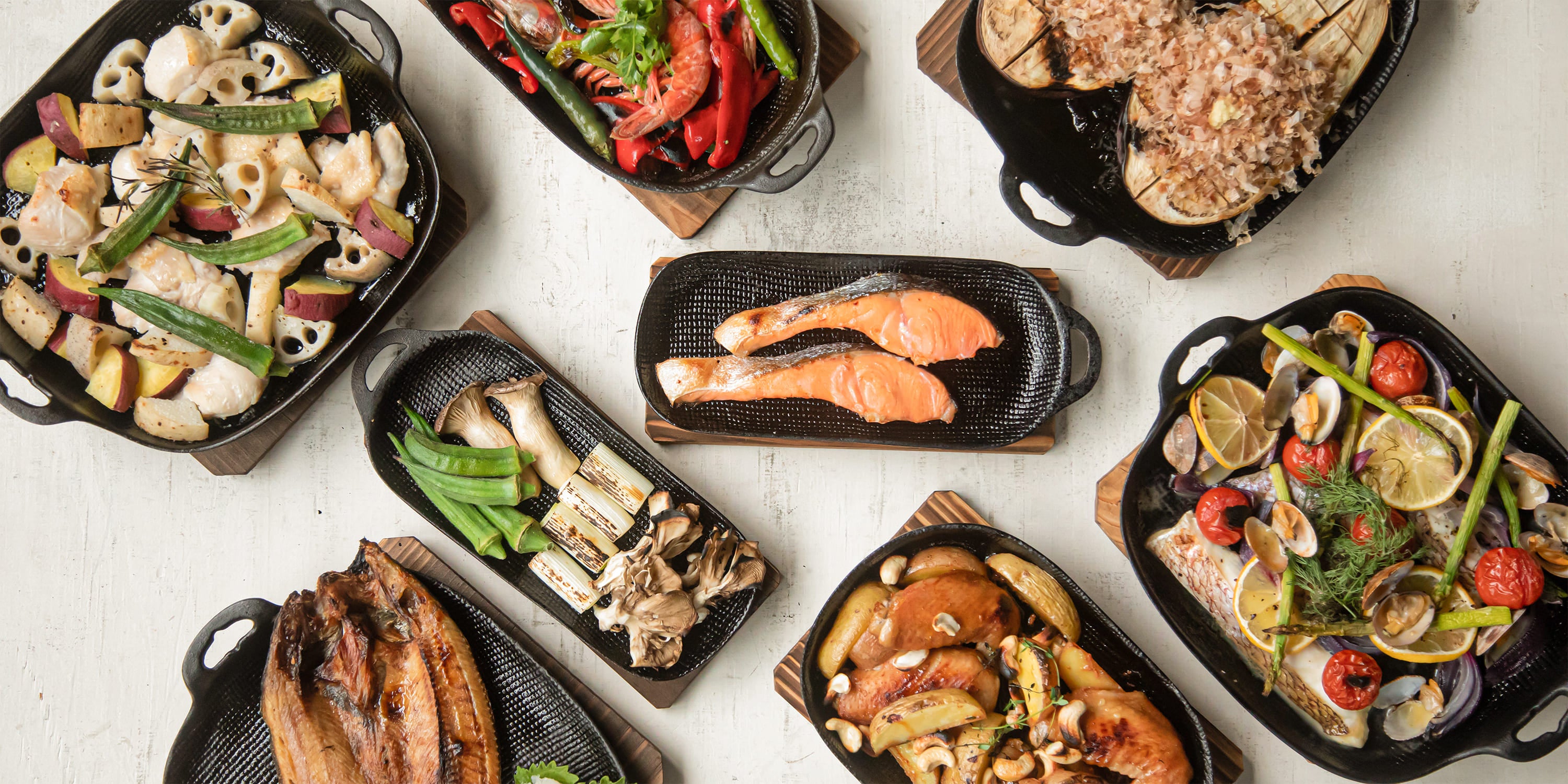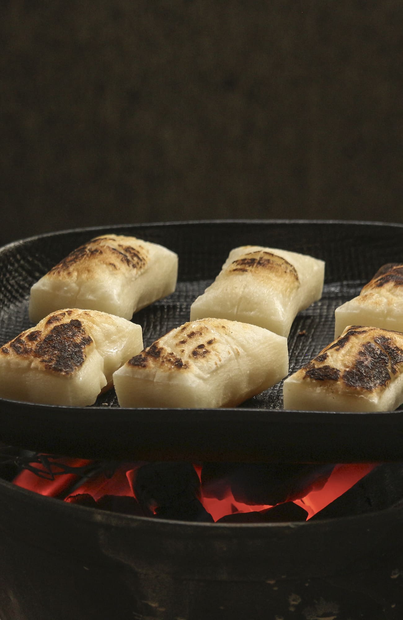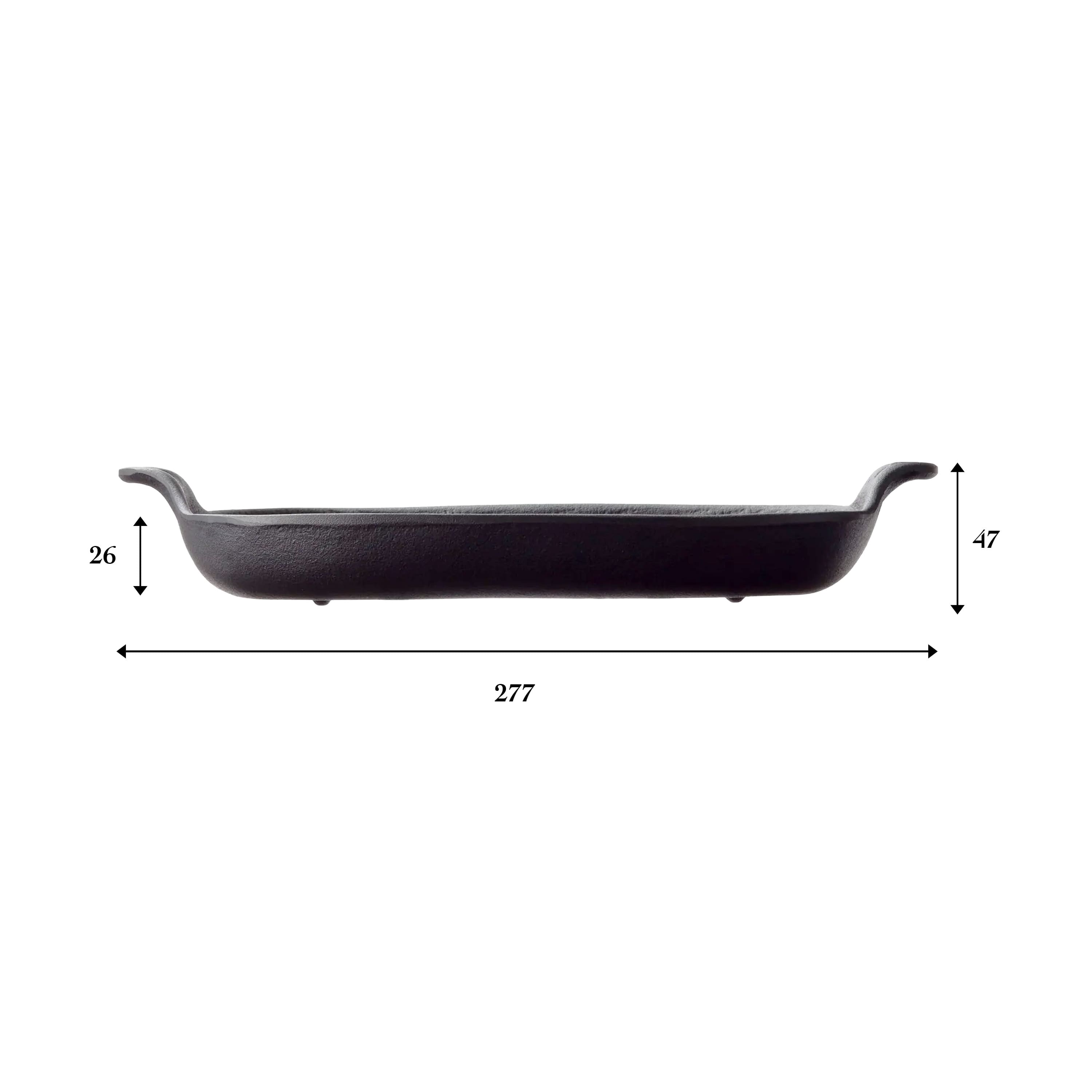 優れた熱源・魚焼きグリルを最大限に活用すべくデザインされた鉄の焼き皿。トースターや直火でも使えます。3~4名分のおかず一皿にちょうどいいサイズ感。鮭の切り身なら3~4尾、切り餅なら4~6個同時に焼ける、シリーズ中最も広い底面で、側面が深いタイプです。深形はグラタンなどソースを用いる料理やごろっとした食材に使いやすい形状です。布目模様とぽってりとしたラインが特徴的で、やさしくレトロな雰囲気がどの世代にも愛される普遍的なデザインです。出来上がったら専用木台に載せて熱々なまま食卓へ運べばうつわに早変わり。